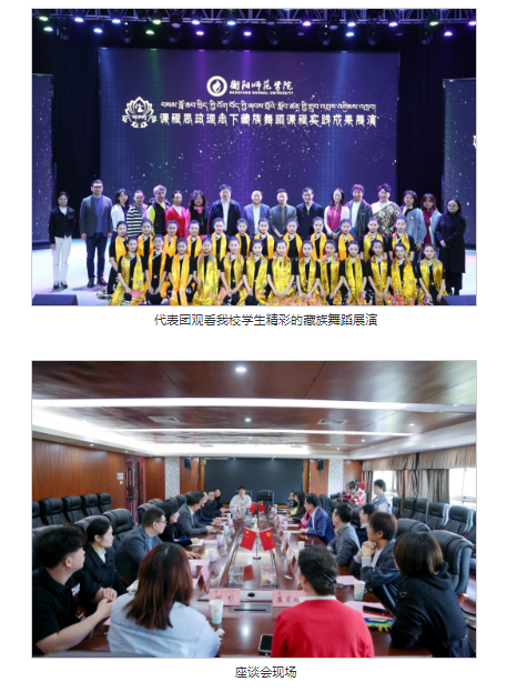 26日上午,代表团来到东校区音乐楼演艺厅,观看我校课程思政理念下藏族舞蹈课程实践成果展演。PA电子舞蹈教师王铁简要介绍了课程思政理念下藏族舞蹈课程的教学理念以及人才培养模式等方面的情况。随后,在悠扬绵长的民族音乐中,我校舞蹈学专业学生用曼妙灵动的优美舞姿,将生活、文化、教育元素融于一体,精彩演绎了课程中的6个教学训练内容,生动诠释了对藏族优秀传统文化的深入理解。舞蹈节目体现了鲜明的民族性、训练性、艺术性,极具艺术感染力,赢得现场阵阵热烈的掌声。