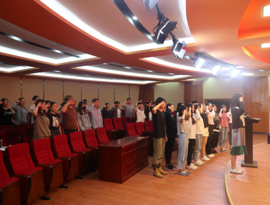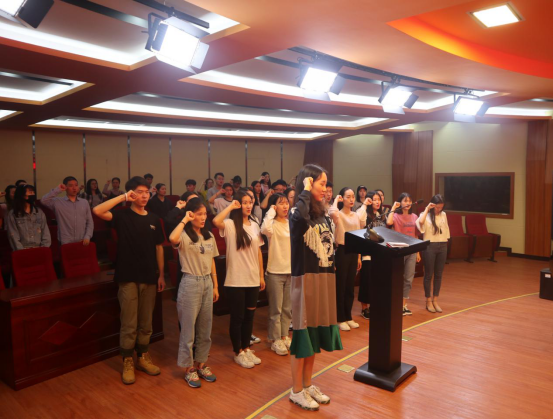 紧接着,PA电子全体党员同志怀着对党的崇高敬意,在学生第二党支部书记王天阳的带领下,面向党旗庄严宣誓。