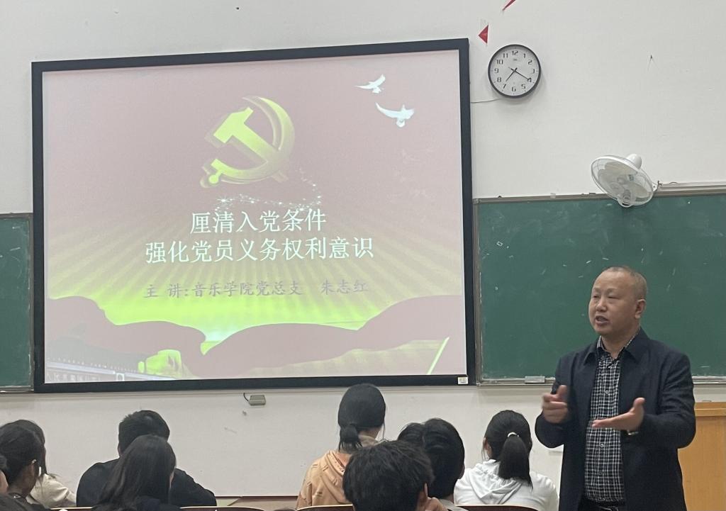 最后,朱书记向同学们介绍入党的程序,分别介绍了申请入党、入党积极分子的确定和培养考察、发展对象的确定和考察、预备党员的接收、预备党员的教育考察和转正几个关键环节。同时,朱书记还希望同学们能够端正入党动机,坚定入党决心,从思想和行为两方面严格要求自己,争取早日成为一名光荣的共产党员!