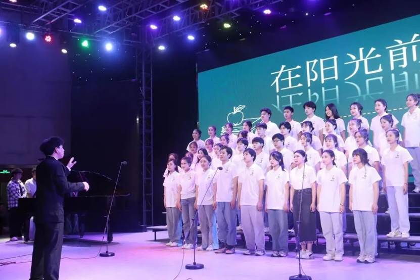 合唱中杂糅着的是他们对大学的留恋与对未来的期待,那几近哽咽的一字一句里饱含深情。