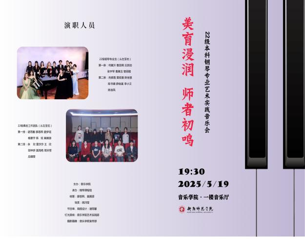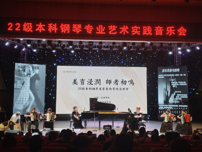 5月19日晚19:30,PA电子演艺厅内琴声悠扬、掌声雷动,由钢琴课程组策划的“美育浸润·师者初鸣”22级本科钢琴专业艺术实践音乐会在此精彩上演。